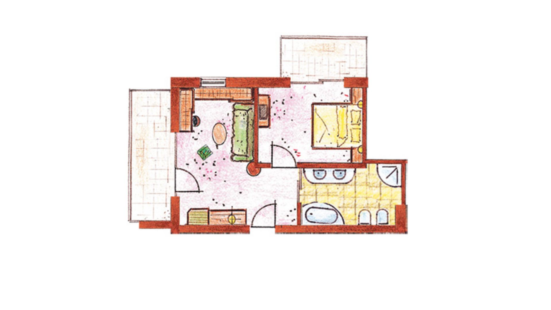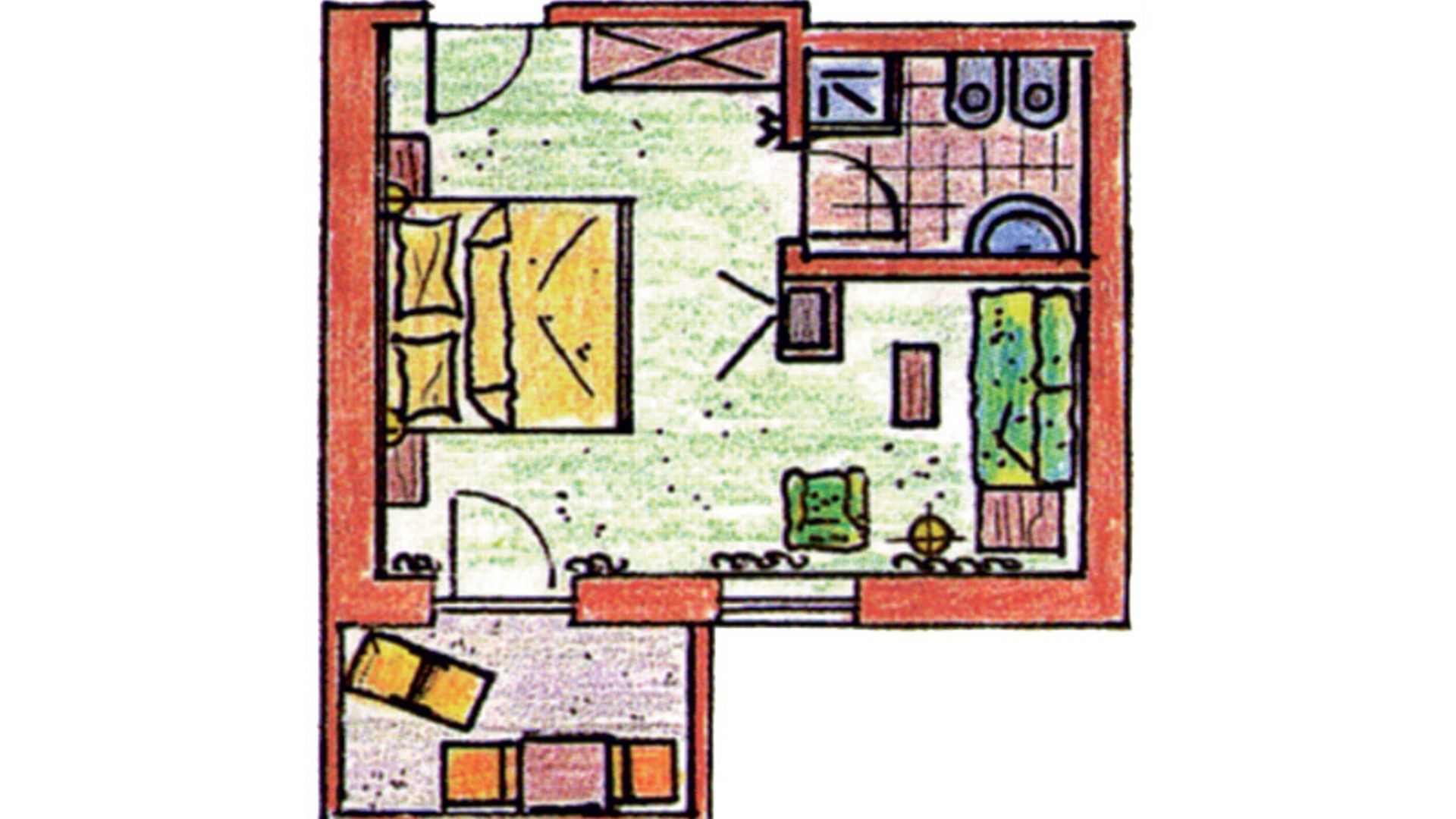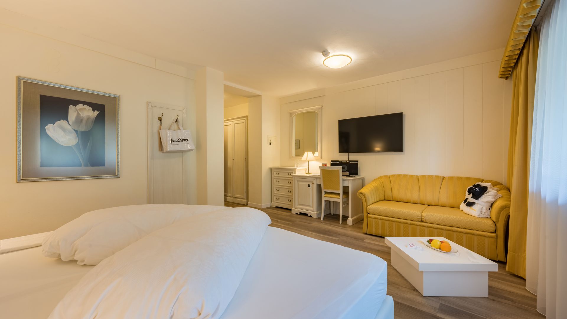 37 m² ca. Exclusive double room, ideal for 2 - 4 people, with separate lounge, minibar, majolica heater,...