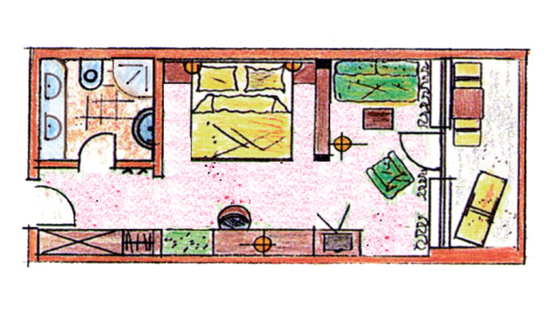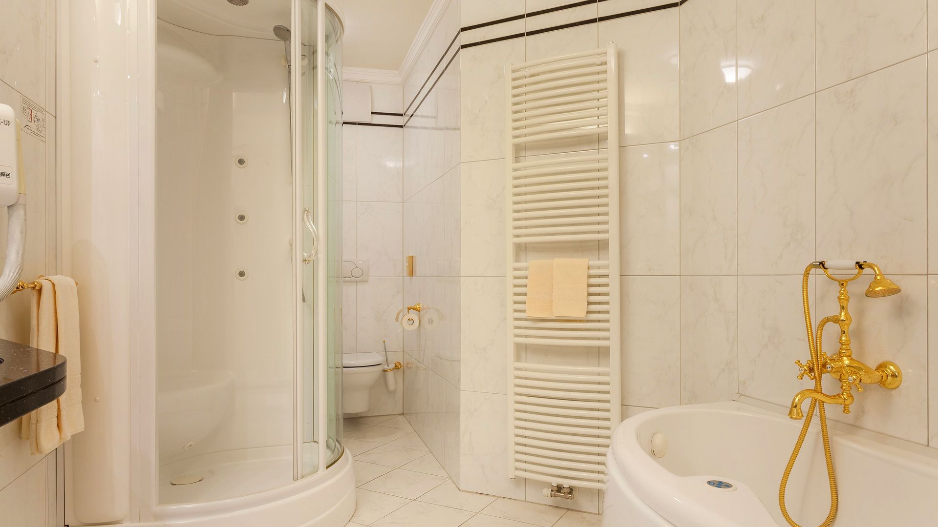 40 m² ca. Exclusive double room, ideal for 2 - 4 people, with large separate lounge, minibar, majolica heater,...