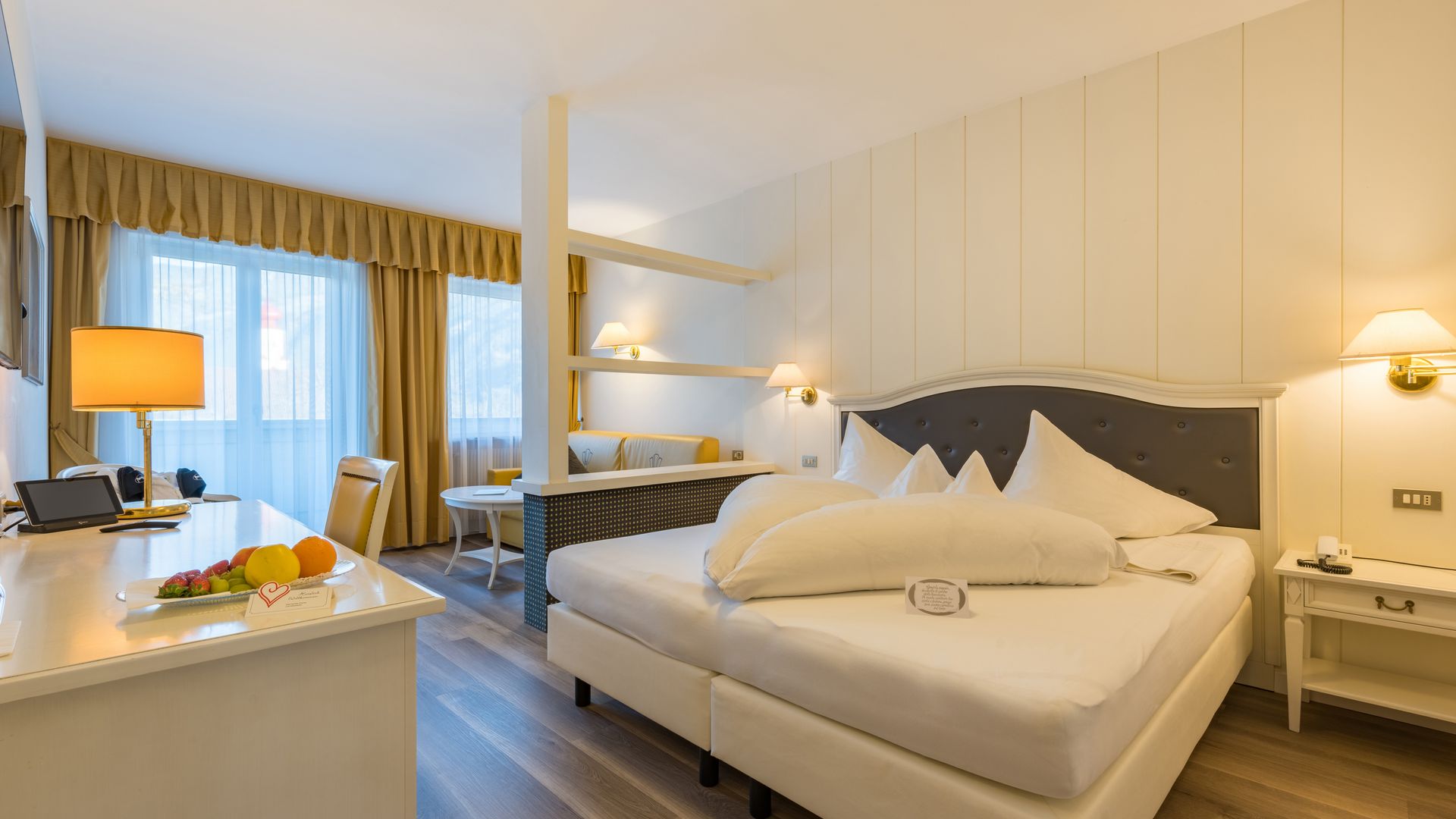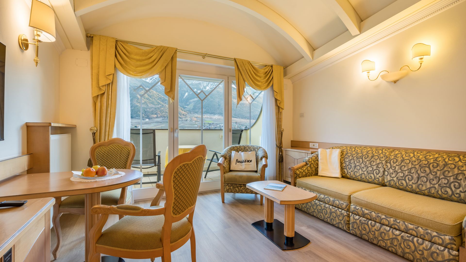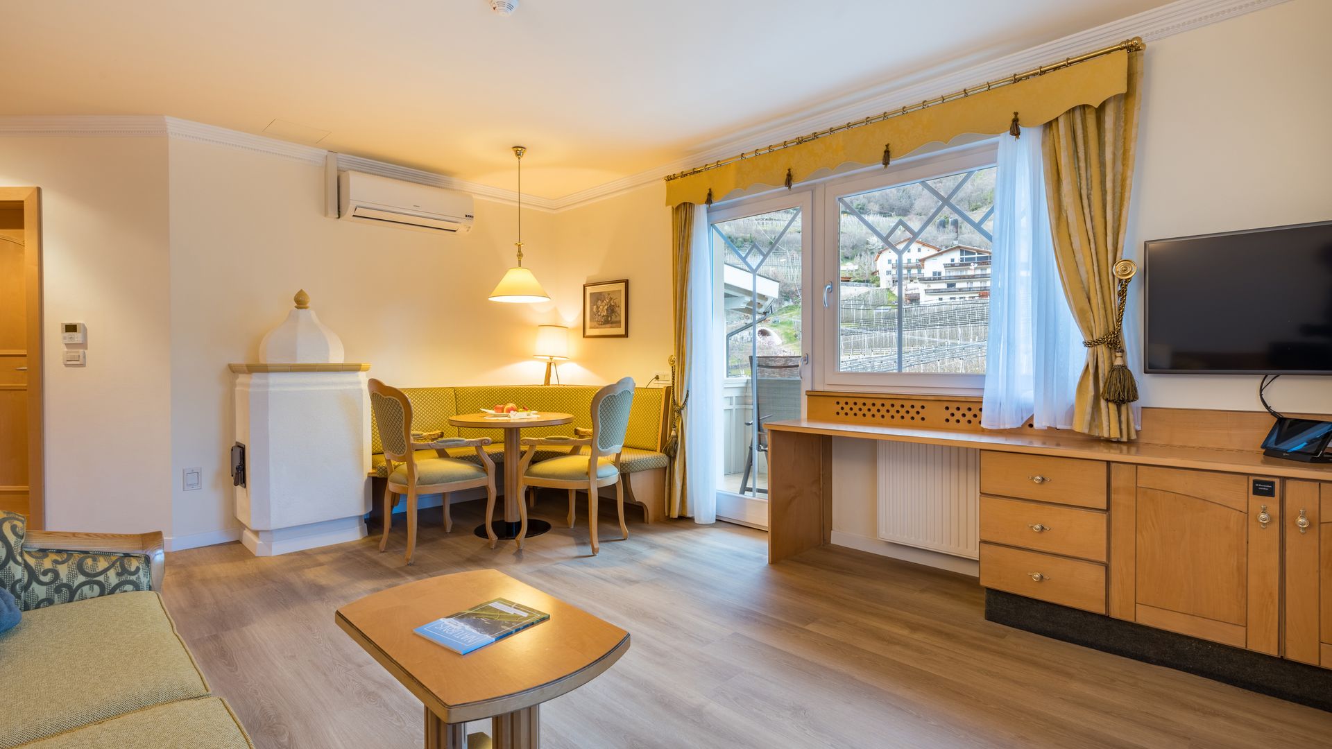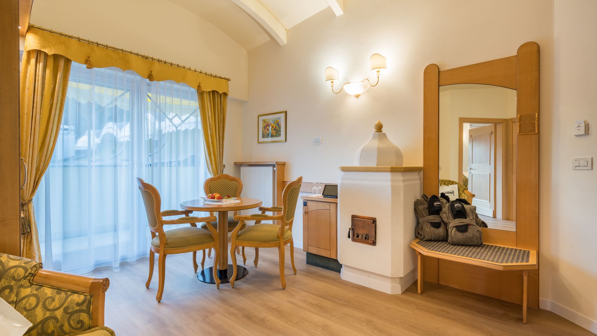 37 m² ca. Esclusiva camera doppia, ideale per 2 - 4 persone, con soggiorno separato, minibar, stufa di maiolica,...