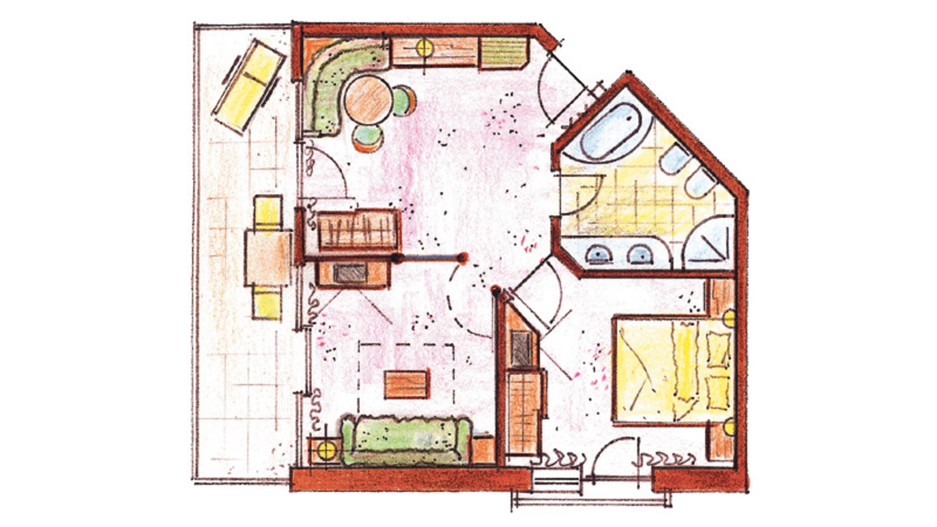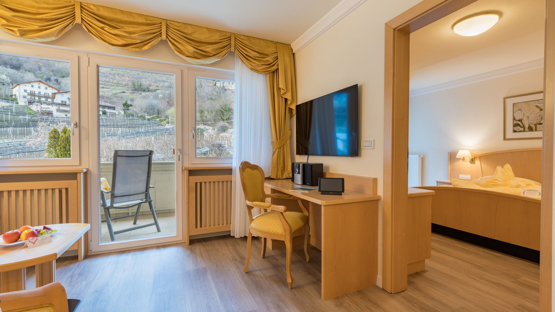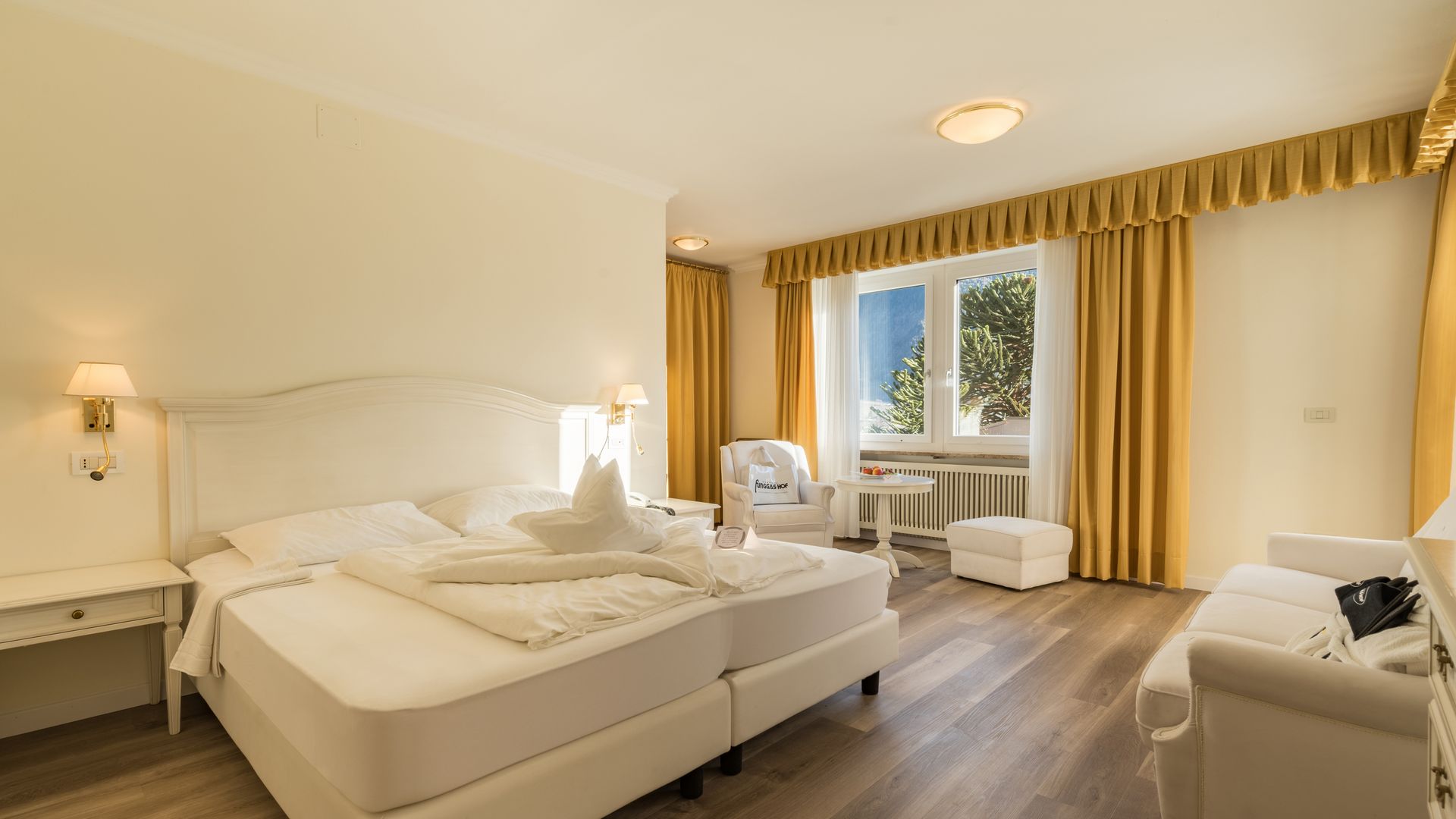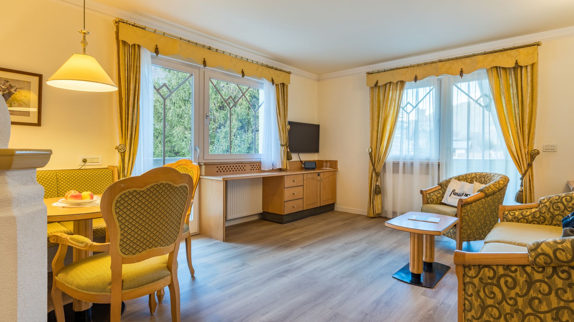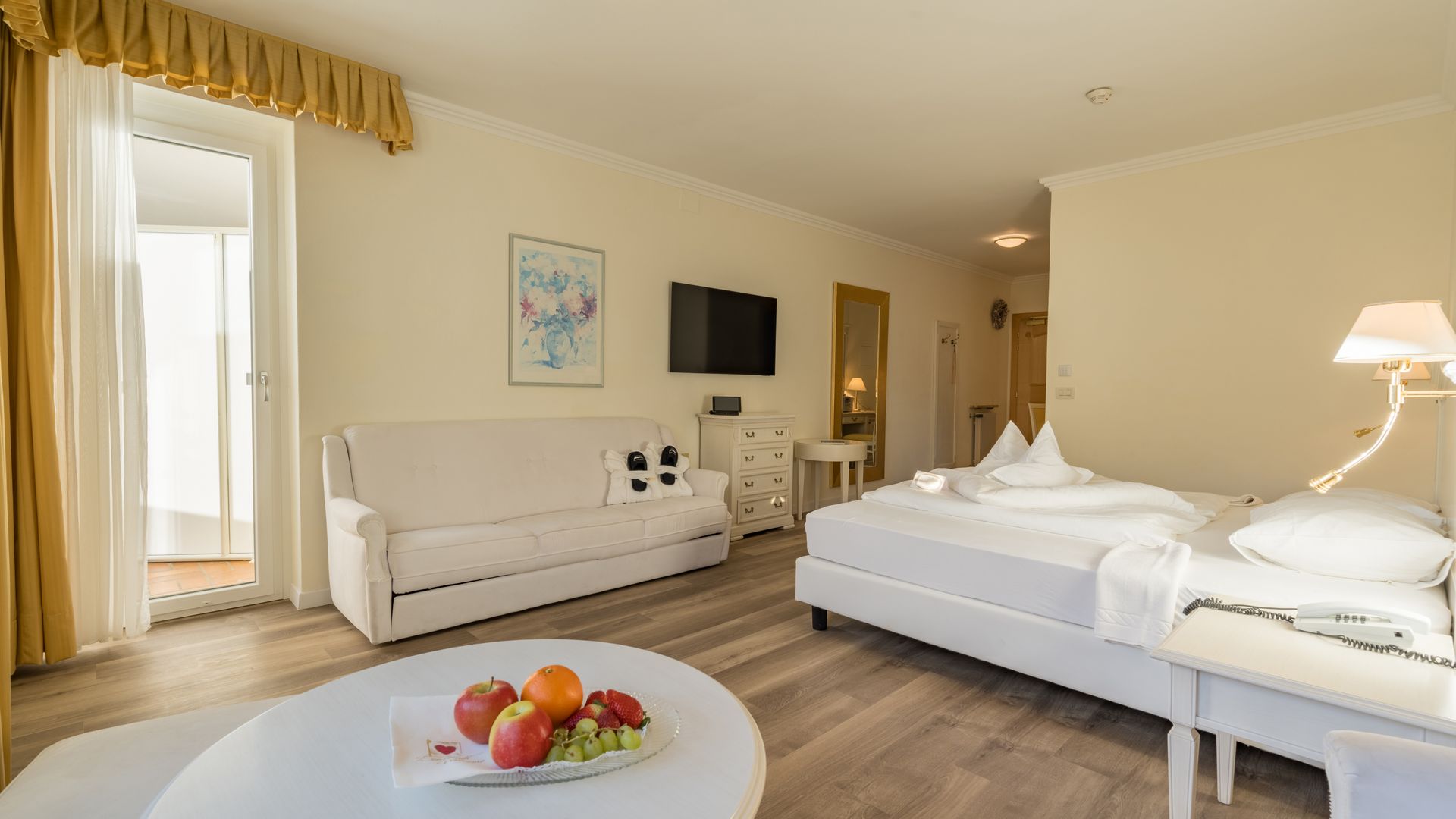 37 m² ca. Esclusiva camera doppia, ideale per 2 - 4 persone, con soggiorno separato, minibar, stufa di maiolica,...