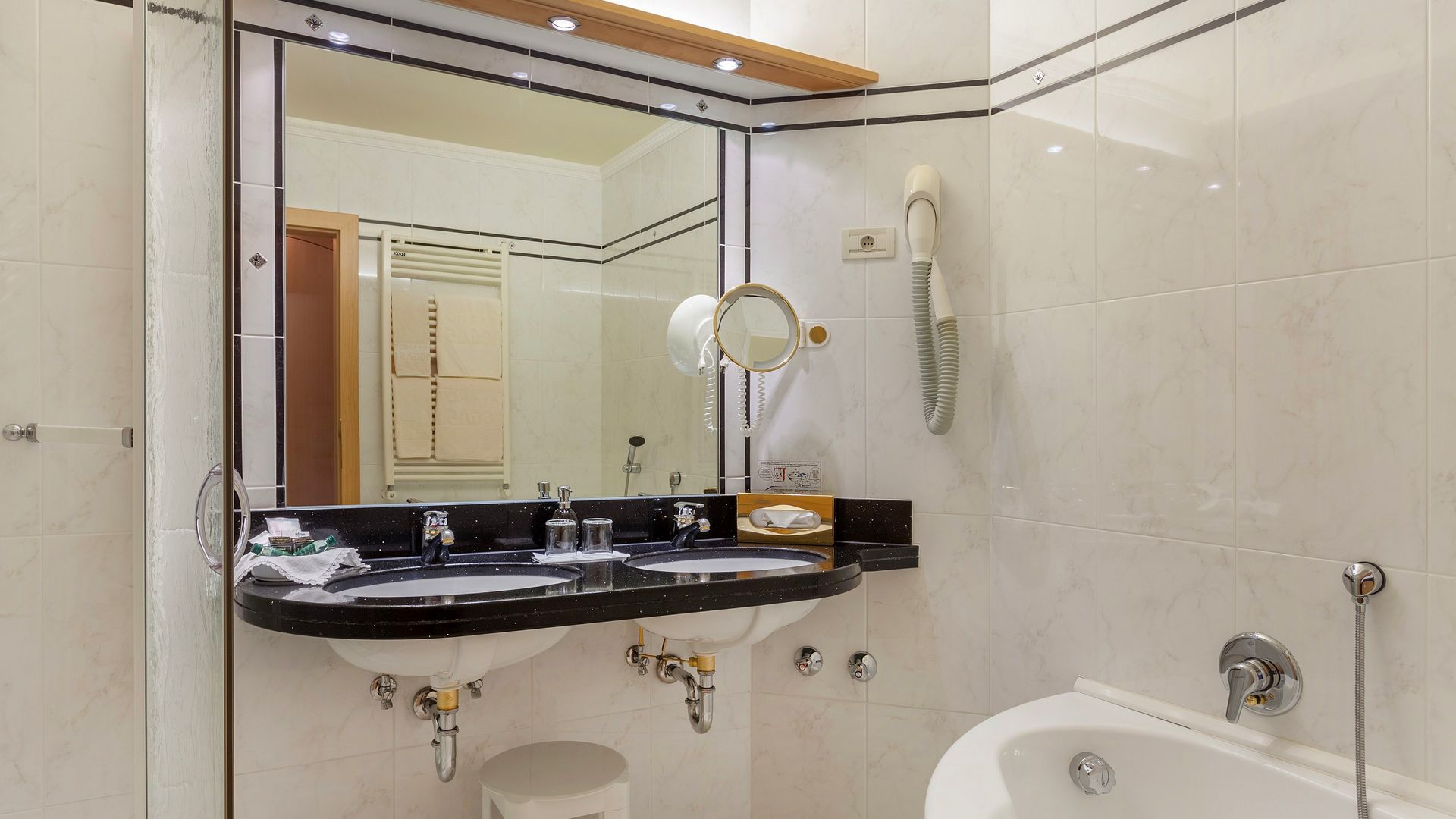 Circa 25m² spaziosa camera doppia con balcone orientato a sud, est o ovest. Tutte le camere dispongono di bagno o...